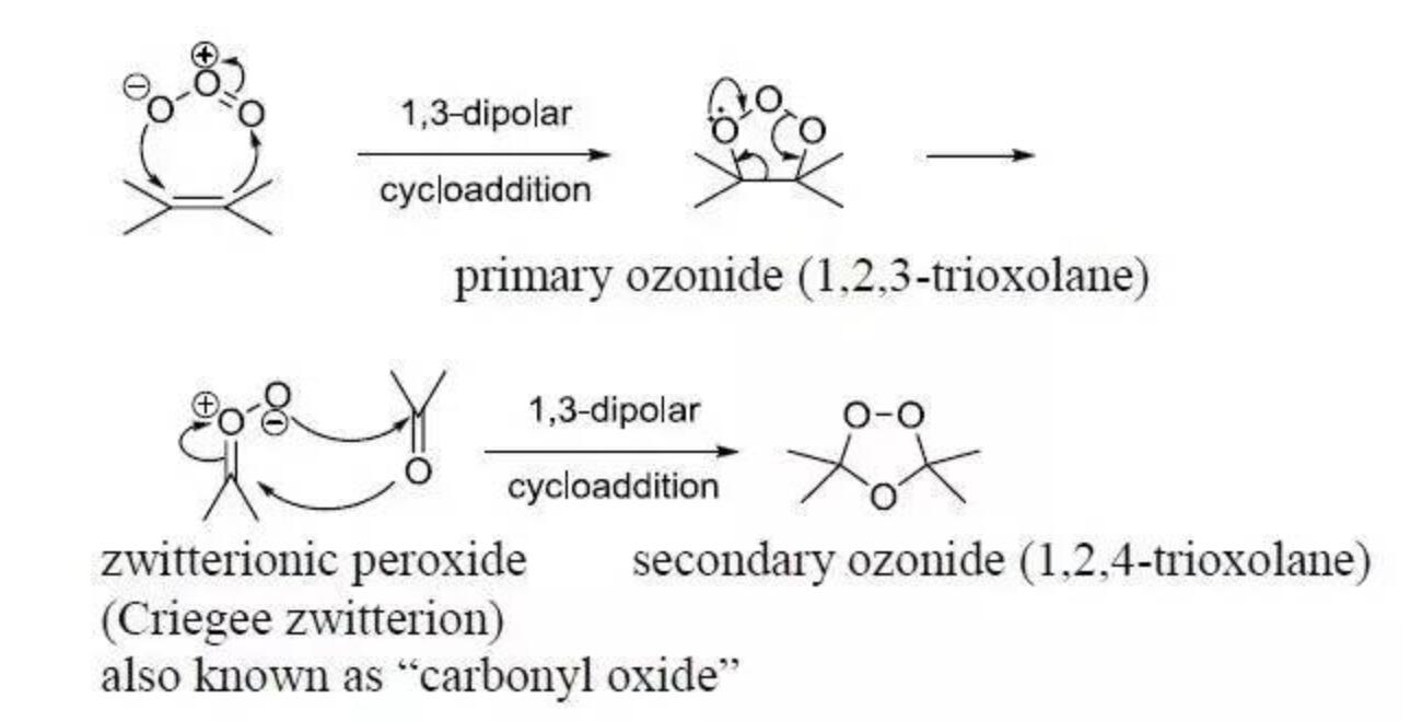 臭氧可以氧化很多有機(jī)物,盡管大部分有機(jī)物并不能徹底被氧化為CO2和H2O,它的理論當(dāng)量可以通過化學(xué)反應(yīng)式計(jì)算出。有個(gè)很著名的反應(yīng)叫“Criegee臭氧化反應(yīng)”(見百度百科),是臭氧氧化烯烴的反應(yīng):