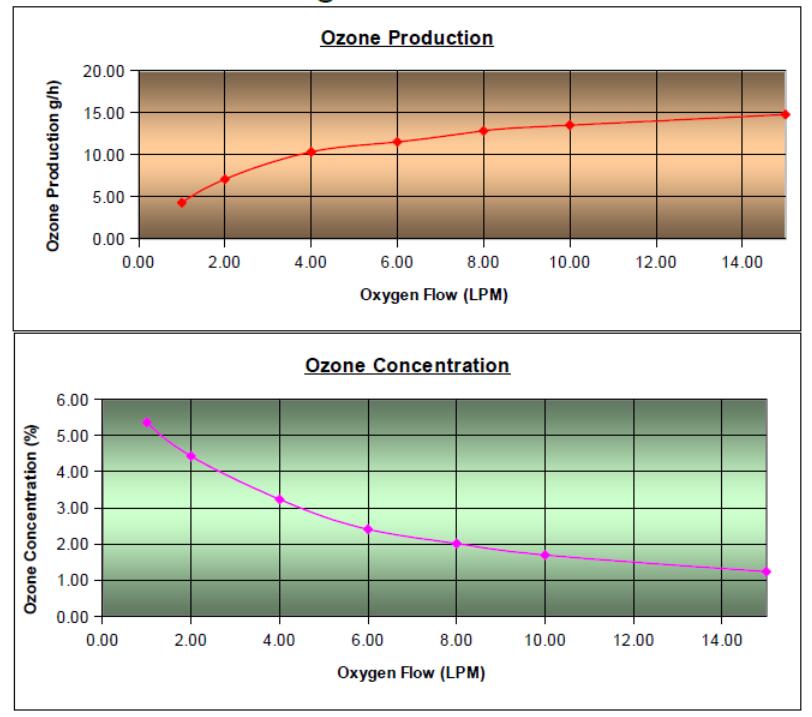 臭氧產(chǎn)量通常以g/hr表示,但也可以以mg/hr, lb/day或其他測量單位表示。 臭氧產(chǎn)量值必須以質(zhì)量隨時間變化的值顯示,該值表示在給定時間段內(nèi)產(chǎn)生的臭氧質(zhì)量。該值是基于臭氧濃度和原料氣流速的計算值。